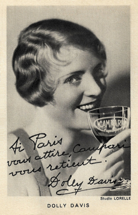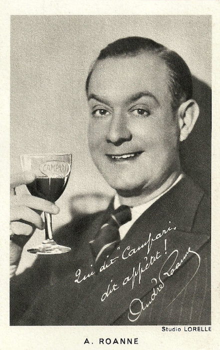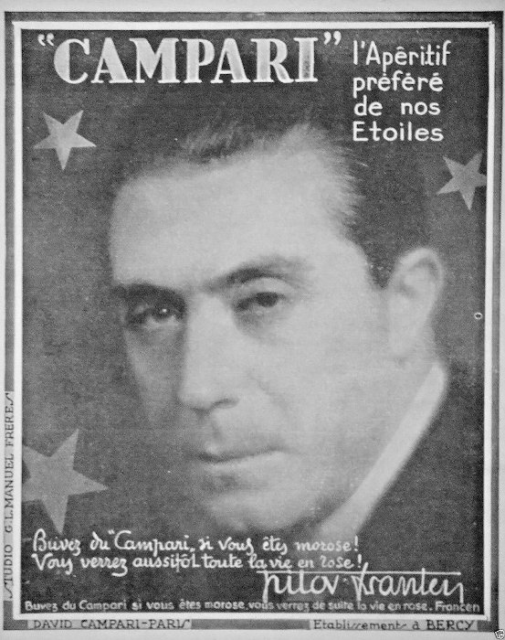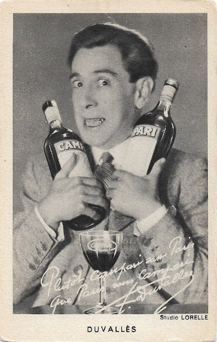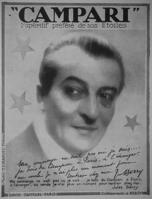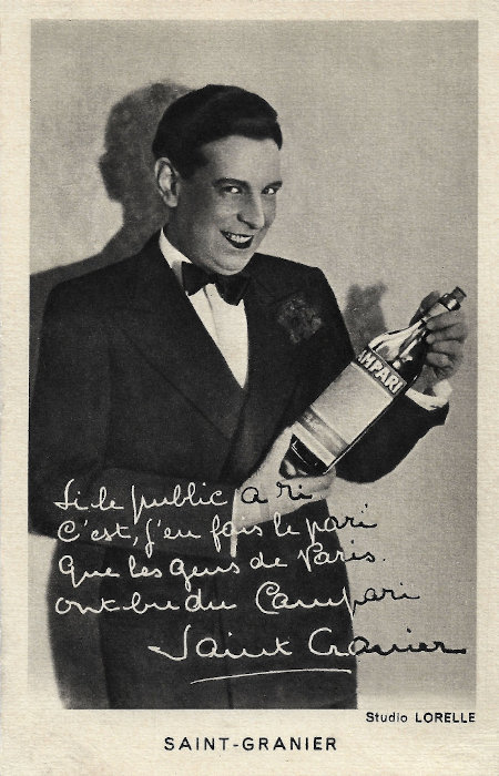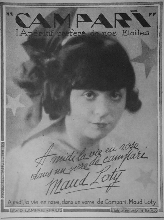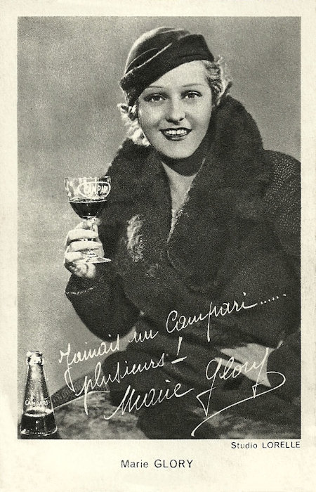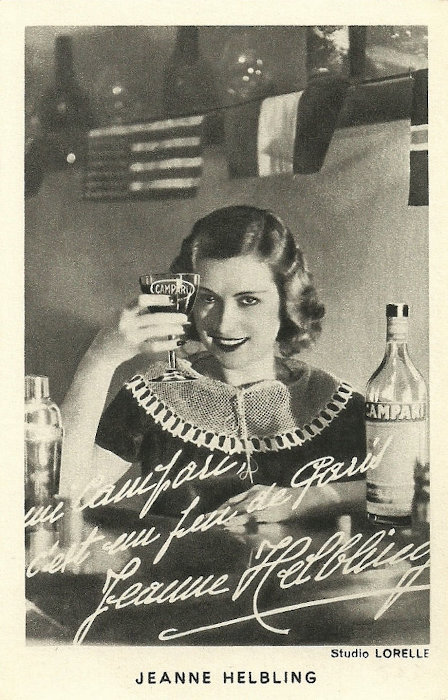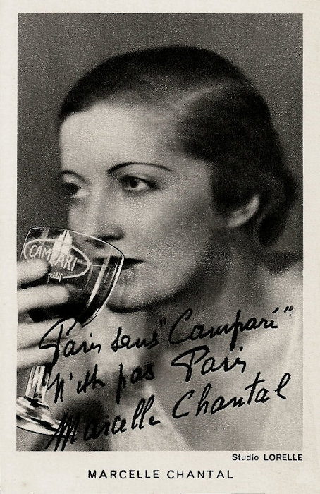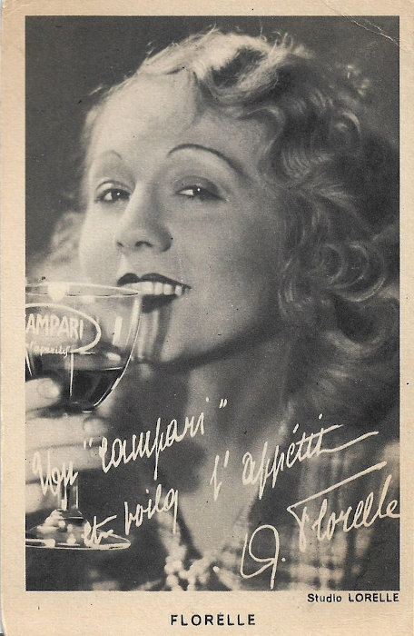 Ensuite viennent les photographies de Lucien Lorelle. En effet, ce dernier est passé des portraits à la publicité en créant un studio spécialisé en 1935. La qualité du tirage est meilleure et les vedettes tiennent directement une bouteille ou un verre de Campari, quitte à peut-être parfois tricher un peu en faisant un ajout sur un portrait. Nous passons donc d'un simple avis donné sur une photo à une mise en scène de réclame.